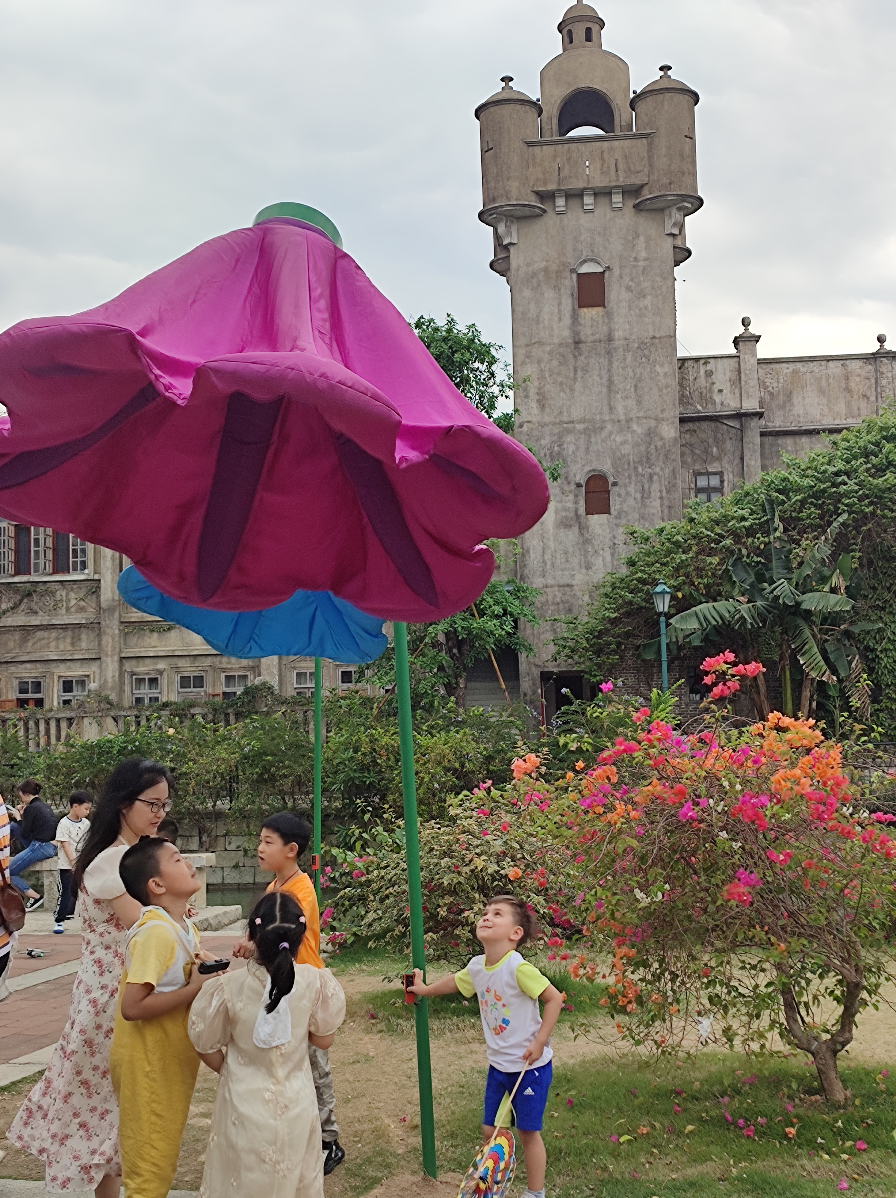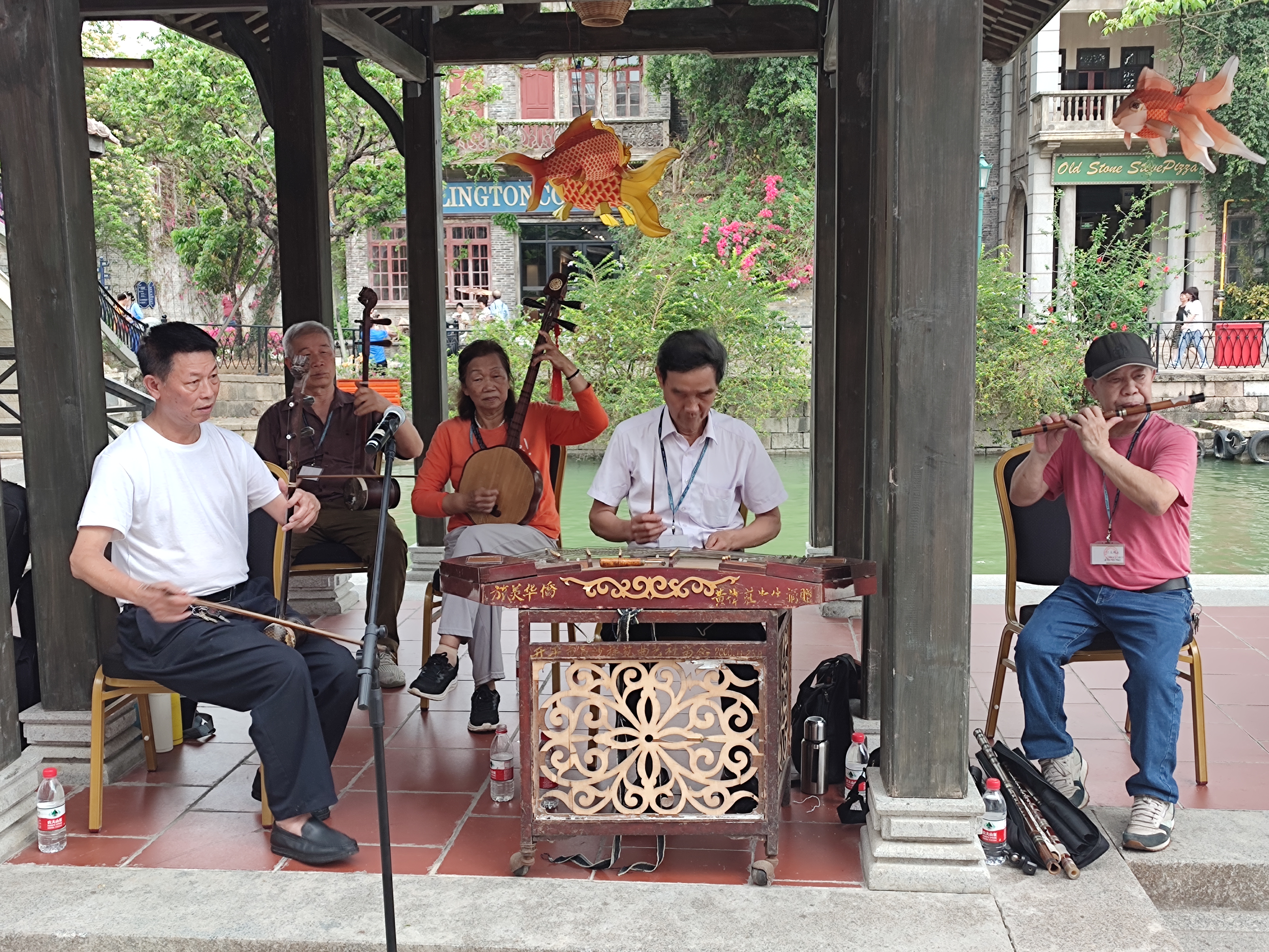 Once we got off the tram meandering through the quieter parts of Chikan, we stumbled upon a fantastic Cantonese Opera Performance! You might think it’s boring for kids but my son was mesmerized and wouldn’t let us leave until it finished:) To our pleasant surprise, right next to that performance, we witnessed another one-this time a group of musicians were playing lively tunes on traditional Chinese instruments! My son loves music and starts dancing as soon as he hears it so this was a lovely moment. Near the fountain (pictured), there are also huge mechanical flowers, which open and close. So simple yet so effective at providing entertainment for the little ones. (Note: I am not sure if the performances take place every weekend of just during special occasions/holidays)